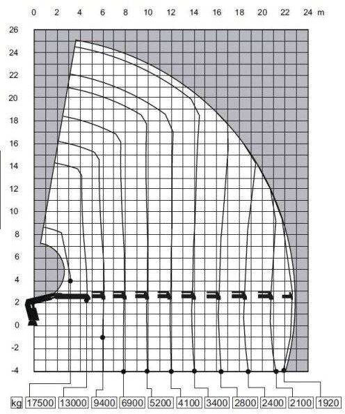 12. W oparciu o przedstawiony diagram wskaż maksymalną masę ładunku, jaką można podać na odległość 12,25 m: