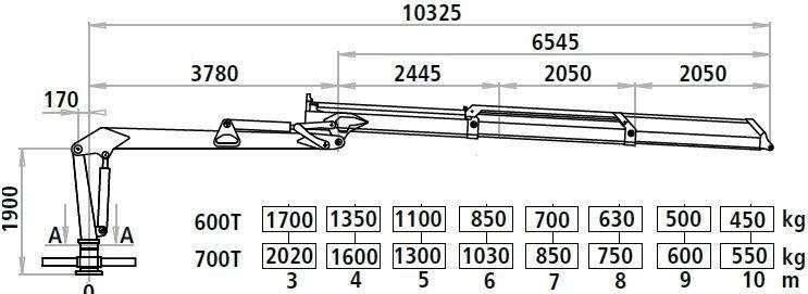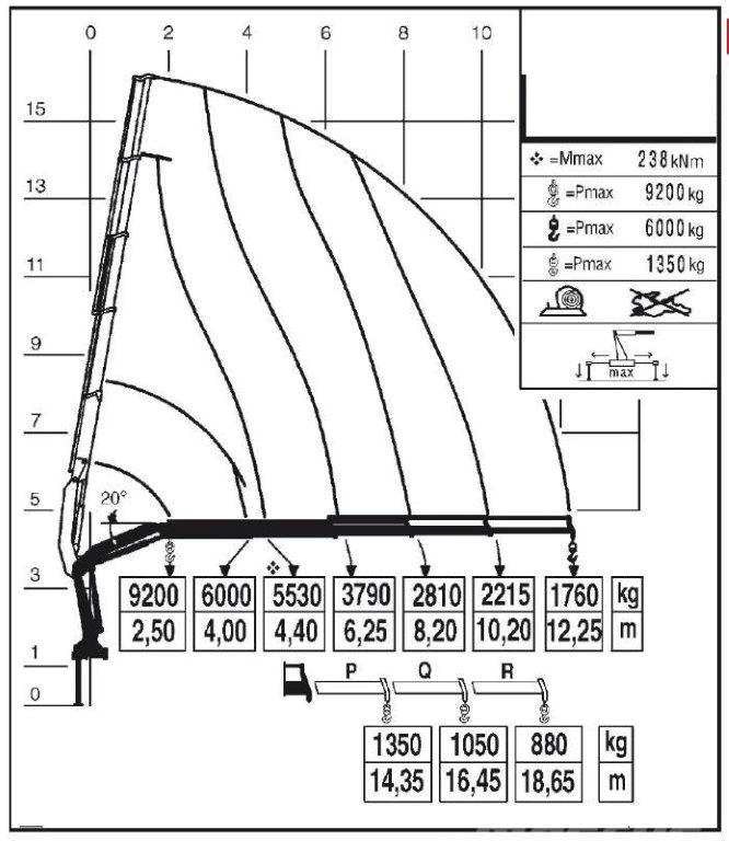 11. W oparciu o przedstawiony diagram wskaż maksymalną masę ładunku, jaką można podać na odległość 20 m:
