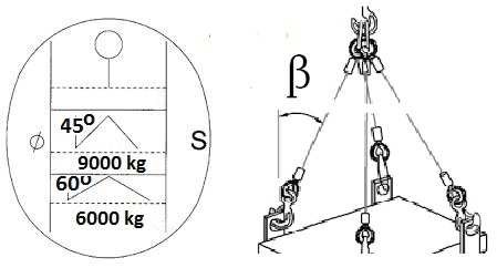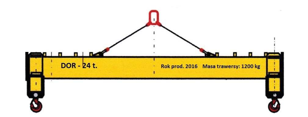 11. Minimalny udźwig urządzenia dźwignicowego podnoszącego ładunek o masie 24 t przy użyciu przedstawionej trawersy wynosi: