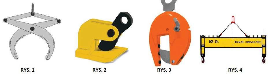 15. Które z przedstawionego osprzętu do podnoszenia można wykorzystać do podnoszenia blach w pozycji poziomej: